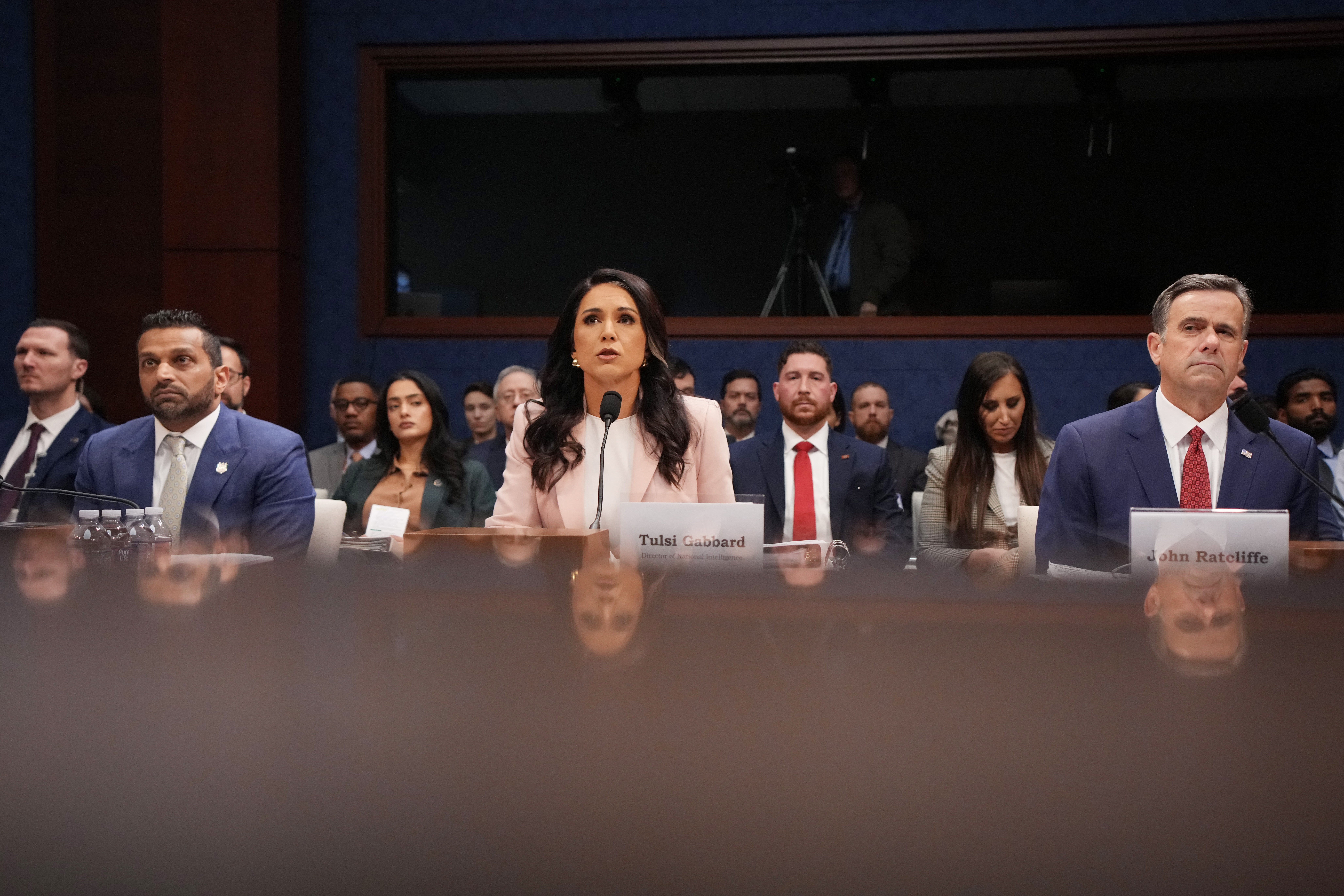President Donald Trump’s top intel officer, Tulsi Gabbard, and CIA Director John Ratcliffe appeared to contradict the White House’s key justification for the war in Iran while testifying Thursday before the House Intelligence Committee.