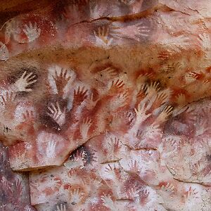 Cueva De Las Manos (Cave Of The Hands) In The Río Pinturas Canyon In Southern Argentina, The Handprints Were Placed In Waves From 7,300 Bc All The Way To Ad 700