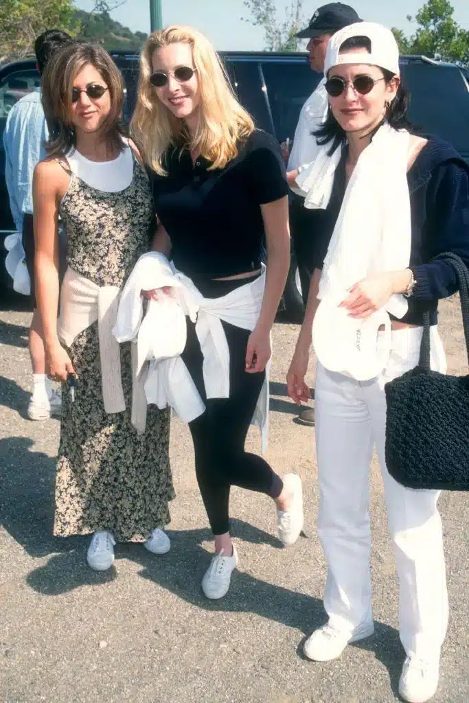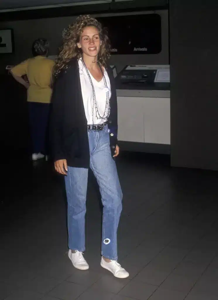 Friends hanging out in early 90s style. You can still see some of the later 80s influences like the teased hair, but the baggy clothes are starting to become more prominent.Friends hanging out in the 90s. Bucket hats, middle parts, denim shorts. Actress Salma Hayek in a popular slip dress with icy eyeshadowActress Courtney Cox in the denim and turtleneck combo. A 90s kid on an early computerActress Julia Roberts with the light denim. Singer Janet Jackson in the baggy denimA skate ad from the 90sOutkast in the mid-90sKids dancing in sandals with socksGirls wearing fashionable over-sized shirts with prominent labelsLight jeans, Nikes, sports jacket Tourists in the city. The shorts here were a very common style. Model Tyra Banks in a comfy 90s outfit. Denim was hugely popular.The grunge/punk style from a 90s movie. Jennifer Love Hewitt in a jeans and crop top comboThe baggy, high-waisted shorts and 90s hair styles.Singer Aaliyah in 90s hip-hop styleThe actors from the TV show, Friends, styling in the 90s. Actress Shannon Doherty wearing light denim, a leather jacket, and cowboy boots. Actor Woody Harrelson with the statement jacket and Nike high-topsFriends hanging out in the 90s. We even get a glimpse of an early computer keyboard. Baggy jeans, oversized shirts, denim everywhereA good representation of 90s hairstyles. A photo of classmates in the 90s. Friends at a party in early 90s attire. Robin Williams in 90s street style with the NikesA grunge teen in the 90s with the dark hair, graphic tee, and baggy denimBright, color-blocking jacketsMariah Carey in 1994Kenan and Kel in the 90s.