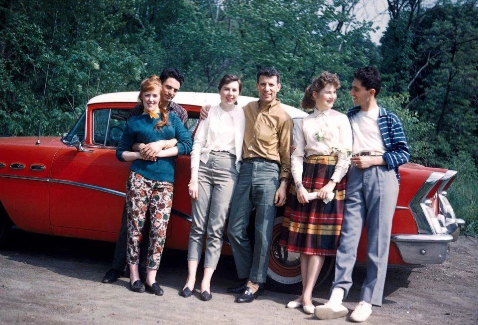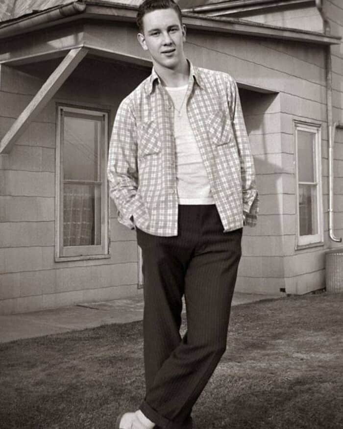 Poodle skirts, capri trousers, sling-back heels, pencil skirts, and hats were also commonly seen and worn on the youth and for more casual outfits. Let’s take a look at some pictures of these popular looks.