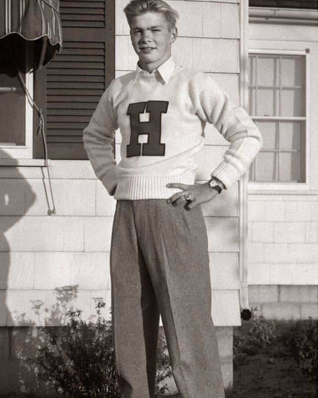 Men’s styles included tweed coats, sweater vests, trench coats, patterned button-ups, hats, and pressed trousers. Men also took a lot of fashion inspiration from the Teddy Boy style. This style embodied the alternative and punk styles of the era.