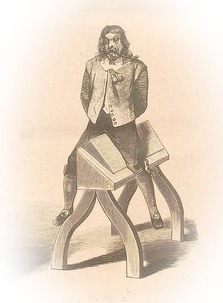 It was originally designed with women in mind. The offender would be stripped of all of their clothes and then made to straddle what was essentially a triangular piece of metal with a board placed over it to form a sawhorse-type shape.