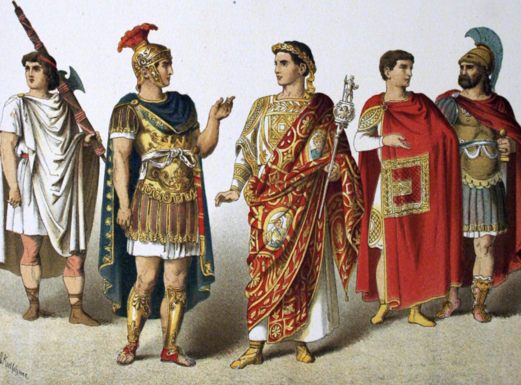 And because the Romans were a severely hierarchical and elitist society, this form of dress of the upper class and ruling patricians tended to be depicted on mosaics and in statues. Consequently, our view of Roman clothing is highly skewed to over-represent the toga and stola.